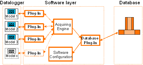 If you have a look at the software layer you see that LysiMess uses different software plug-ins to collect data from several models of installed datalogger.
