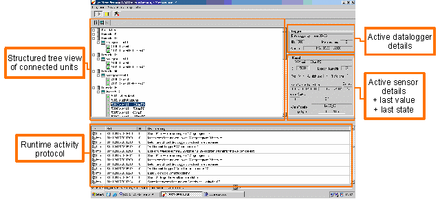 One software interface for all datalogger models in your research facility Ergonomic  overview of the actual data acquisition and sensor stateIntegrated runtime activity protocol and runtime watchdogFree scaleable acquisition cycles and intermissionSpecial module to collect soil water drain values and to tare weighing unitsSpecial module to check and synchronise datalogger state Self configuring via central database configuration tables  |  |  |